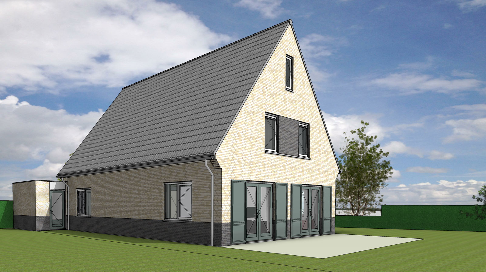 Op een hoekkavel in woonwijk Haarzicht is deze vrijstaande woning ontworpen in particulier opdrachtgeverschap. Door een hoofdvorm met lage goothoogte en een uitgebalanceerde combinatie van metselwerk, voegwerk, dakpakken en kleurstelling past de woning in het dorpse karakter van de woonwijk. Deze woning is energieneutraal door toepassing van zonnepanelen en een warmte koude opslag in de grond.