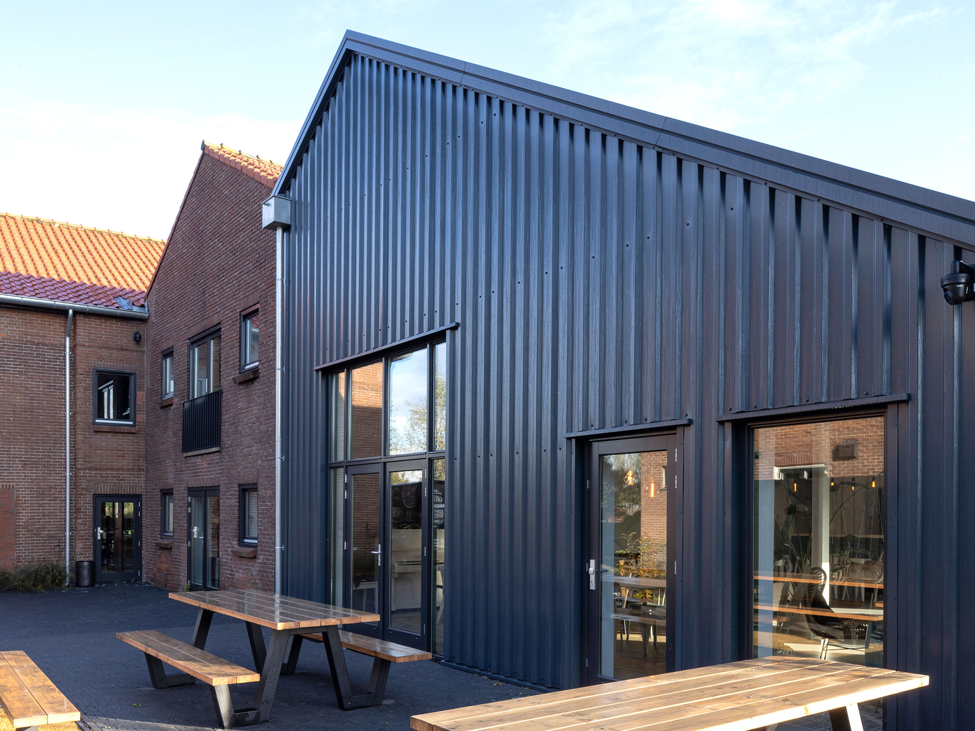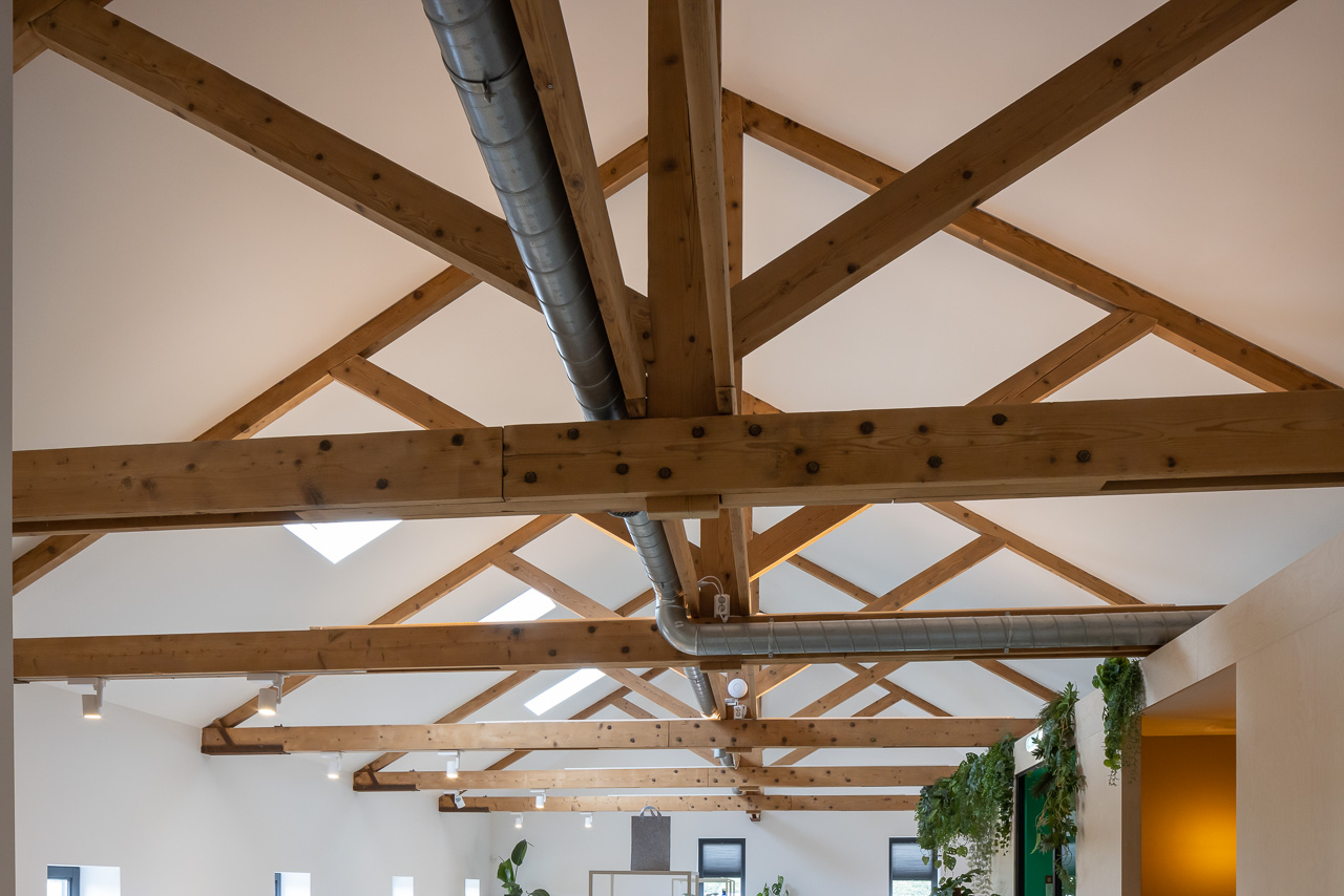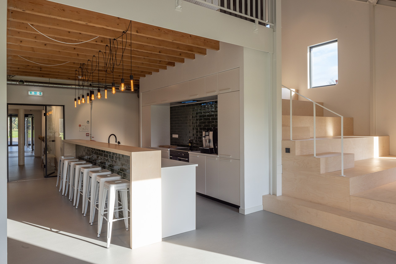 Door een paar slimme doorbraken in de binnenwanden te maken is er een lange zichtlijn gecreëerd van entree kijkend naar de polder achter het pand. Aan weerszijde van deze zichtlijn, die ook als centrale verkeersroute fungeert, zijn kantoorfuncties gesitueerd. Aan het einde van de centrale verkeersroute komt men in een open gebied waar ruimte is voor informeel ontmoeten, eten in het werkcafé en voor presenteren voor een verdiepingshoge tribune. Met moderne materialen in het interieur en glazen scheidingswanden is een open en transparante werkplek gecreëerd. Aan het exterieur zijn enkele kleine ingrepen gedaan. Hierdoor blijft de oorspronkelijke architectuur van de boerderij gehandhaafd. Een klein deel van de bebouwing is gesloopt maar is middels stucwerk op de gevel in contouren nog wel zichtbaar. Middels een groot stalen portaal is in de voorgevel ruimte gemaakt voor de nieuwe entree.
